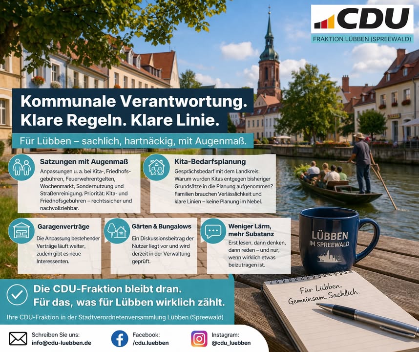 Die CDU Lübben hat heute einen wichtigen Schritt für ihre künftige Öffentlichkeitsarbeit gemacht: Gemeinsam haben wir ein neues Social-Media-Team gegründet. Mit fünf engagierten Mitstreitern ist der Start gelungen ? motiviert, ideenreich und mit klarer gemeinsamer Richtung.